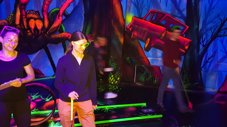 So wurde aus  dem Vormittag ein gemeinsames Frühstück in Pentling und im Anschluss hatten wir noch viel Spaß im 3D Funhouse beim Schwarzlicht Minigolf.